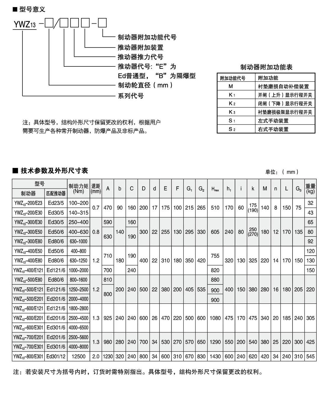 ● 產(chǎn)品型號(hào):YWZ13-200、YWZ13-250、YWZ13-315、YWZ13-400、YWZ13-500、YWZ13-630、YWZ13-710、YWZ13-800